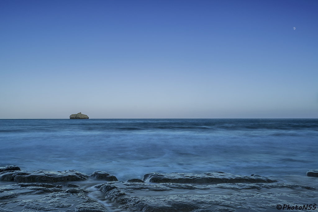 Las fotos las hicimos desde las rocas que separan la cala de la playa y que hacen de separación entre los dos restaurantes que comentaba antes. Desde este punto, tenemos unas rocas planas justo a nuestros pies que ayudan a la composición de las fotos, al fondo unas formaciones rocosas y a la izquierda la isla de Portitxol. Además de la imagen inferior también podéis ver otra foto del lugar en la cuenta de Instagram @photo.nss