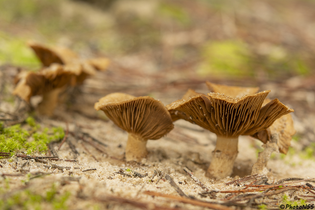 Tanto a la izquierda como la derecha del camino hay unos cuántos pinos jóvenes y entre sus troncos encontramos grandes cantidades de setas de diferentes clases. Suponemos que en años lluviosos y con buenas condiciones para el crecimiento de setas, esta hoya presentará una gran abundancia micológica tanto en cantidad como en variedad.