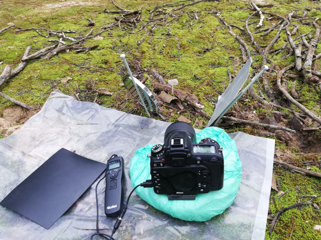 Para hacer las fotos sin ensuciarnos demasiado es recomendable extender un gran plástico para poder tumbarnos, puesto que como he comentado antes, el terreno estaba bastante enfangado. Sin duda, muy útil llevar siempre un plástico como éste. También es especialmente interesante utilizar una bolsita de plástico con arroz dentro a modo de trípode cuando fotografiamos a ras de suelo. Muchas veces no puedes extender el trípode a tan poca altura por las características del terreno y con la bolsa de arroz puedes apoyar adaptándote al terreno fácilmente. Utilizar el LiveView (ojo con la batería) y un disparador también puede resultarnos de gran ayuda además de permitirnos un mejor enfoque y obtener una fotografía más nítida.